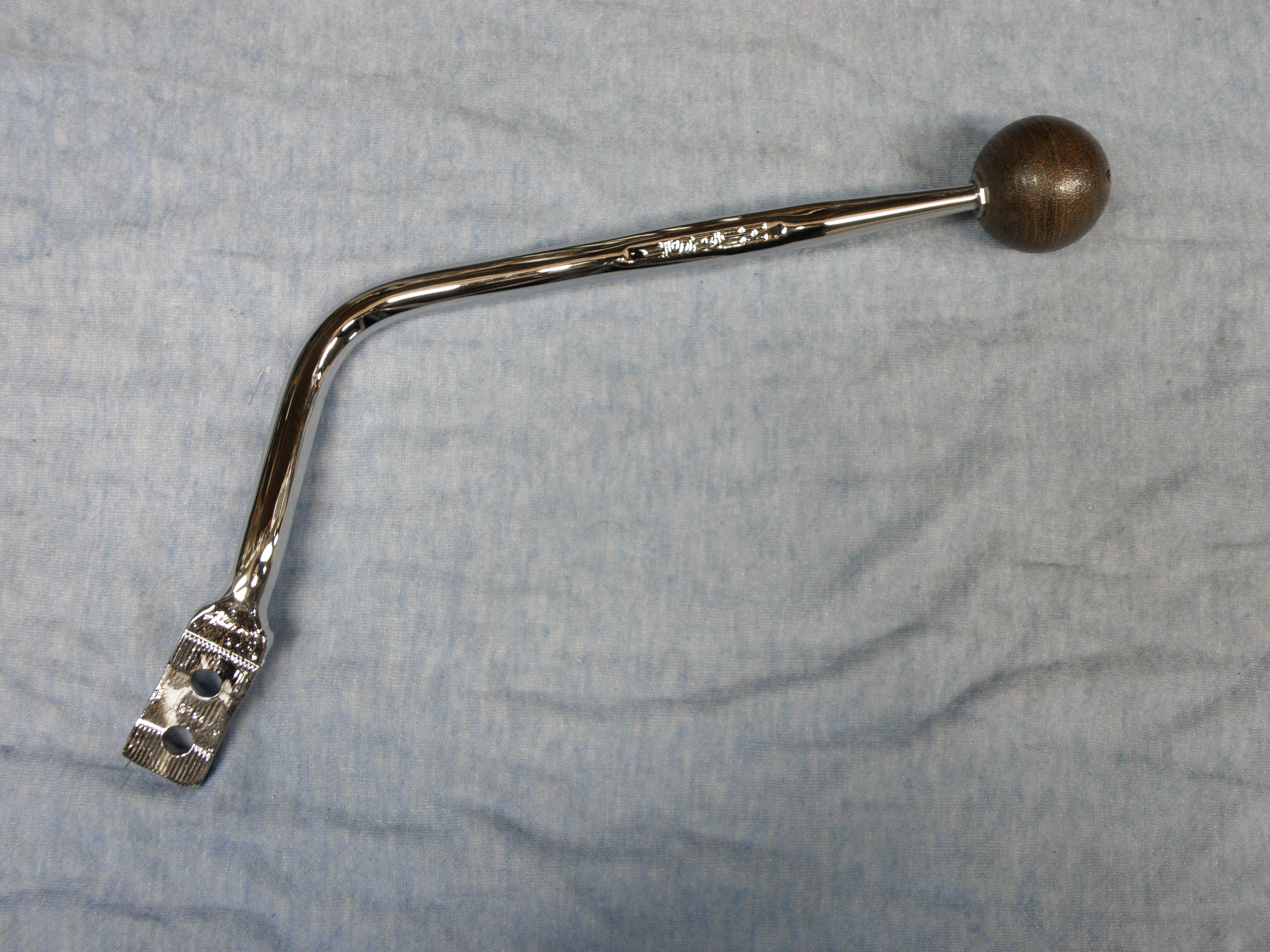 Restored original Hurst shift handle for '72 - "Up (bolt-on) A-Body non-console cars. Handle is rechromed and a new white ball and lock nut. Woodgrain ball additional $17. (Limited quantities availiable).